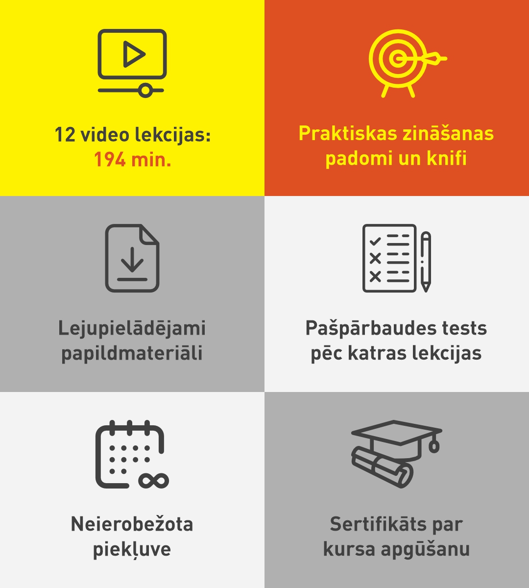 Stratēģijas, rīki, padomi un atskārsmes, kā uzlabot darbu ar klientiem. Zināšanas, par kurām uzņēmumi maksā daudzus tūkstošus eiro, šajā kursā pieejamas par ļoti demokrātisku maksu.
